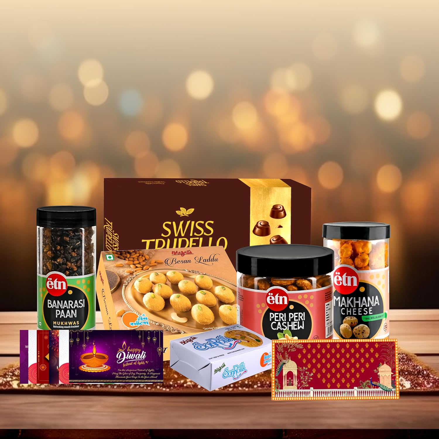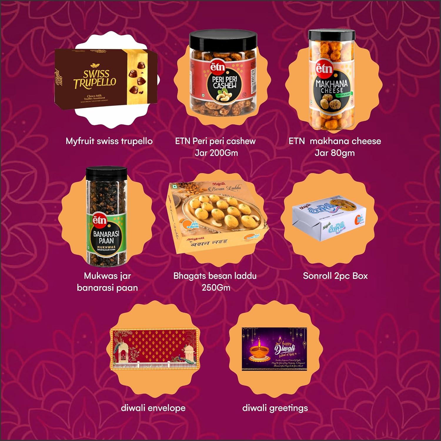Order BulkCelebrate the joy of Diwali with this premium Diwali Sweets Hamper, thoughtfully curated with 8 delightful treats. A perfect blend of traditional flavors and modern indulgence, this festive gift box is ideal for family, friends, or corporate gifting.