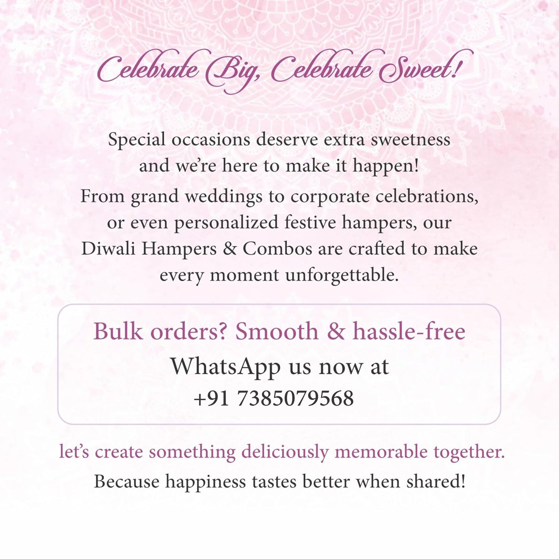 I ordered the Premium Diwali Hamper for my family and it was beyond expectations! πβ¨ The packaging was elegant, the sweets were super fresh, and the variety inside made it perfect for gifting.